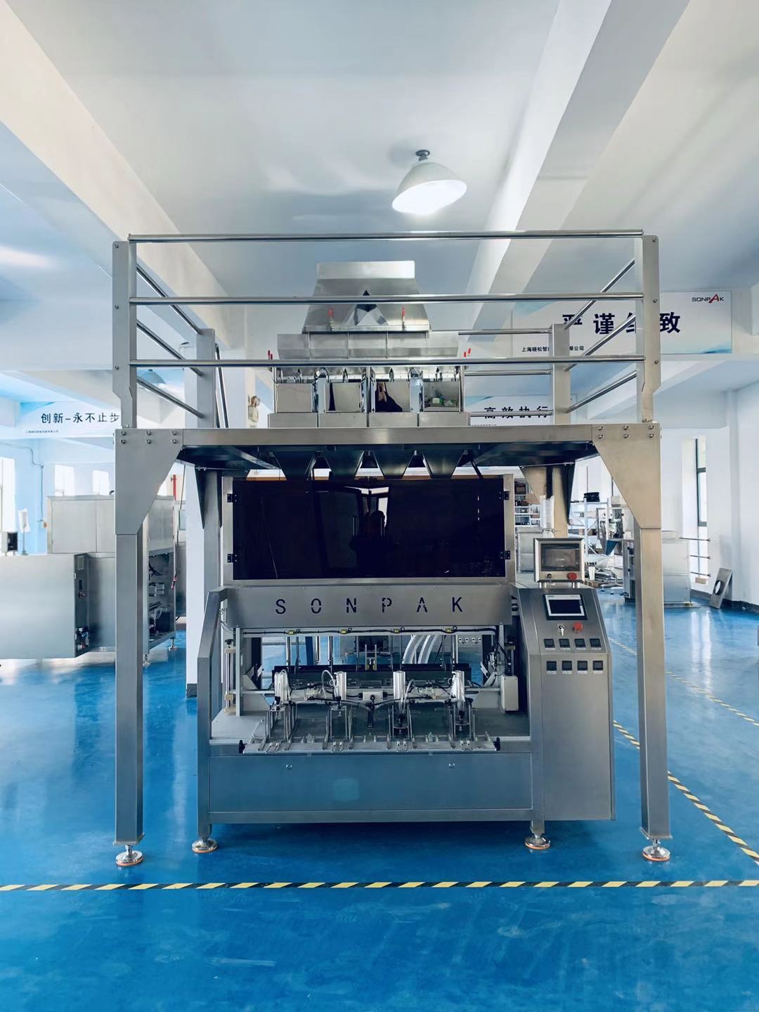 適用于形狀均勻、流動性較好的顆粒物料的真空整形包裝。全自動化,有效節約生產成本,能自動取袋、送袋、開袋、上袋、充填、整形抽真空、封口、成品輸出。